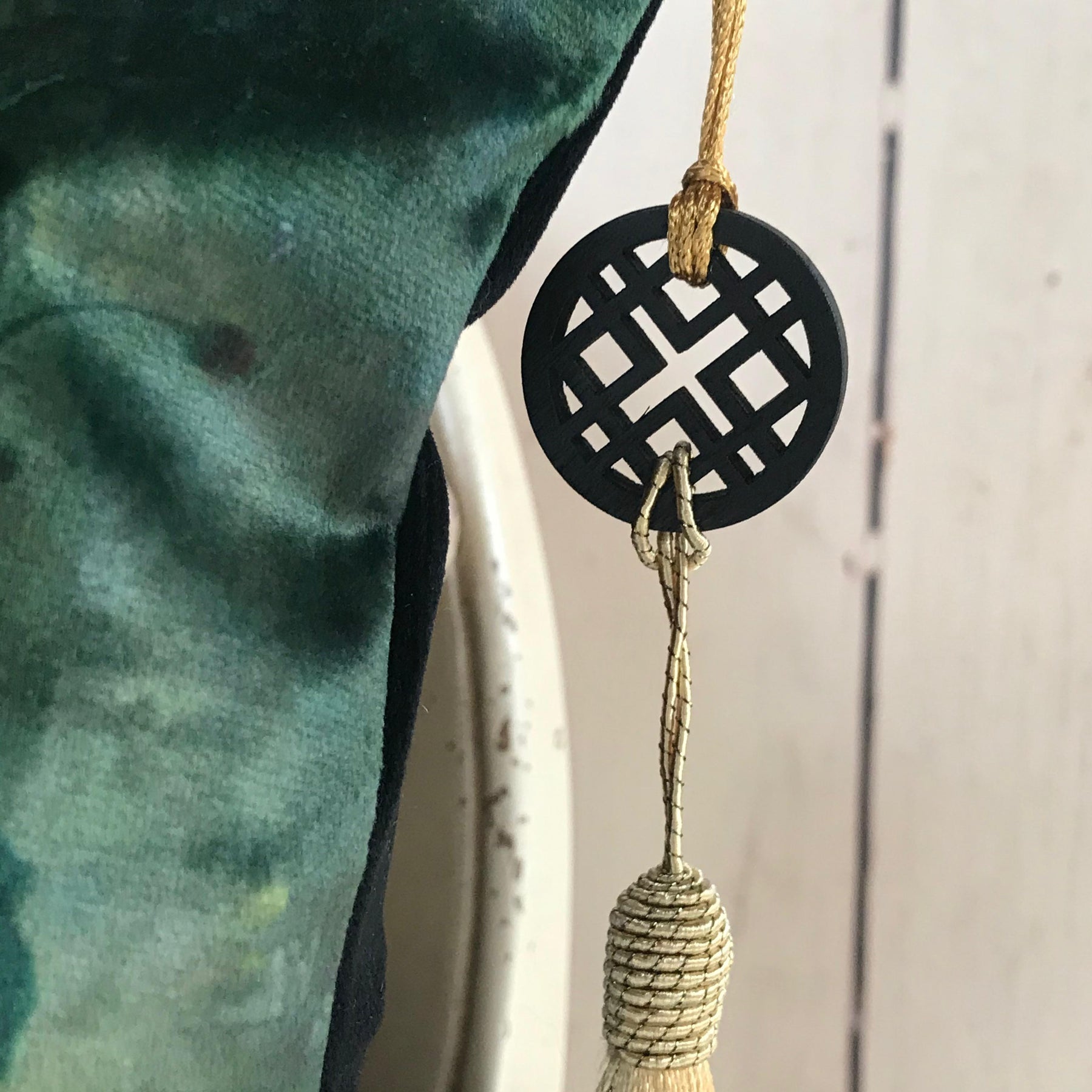 Our soft velvet cushion cover has a rich black velvet reverse, finished with a discreet zip and single golden tassel for a touch of luxe!